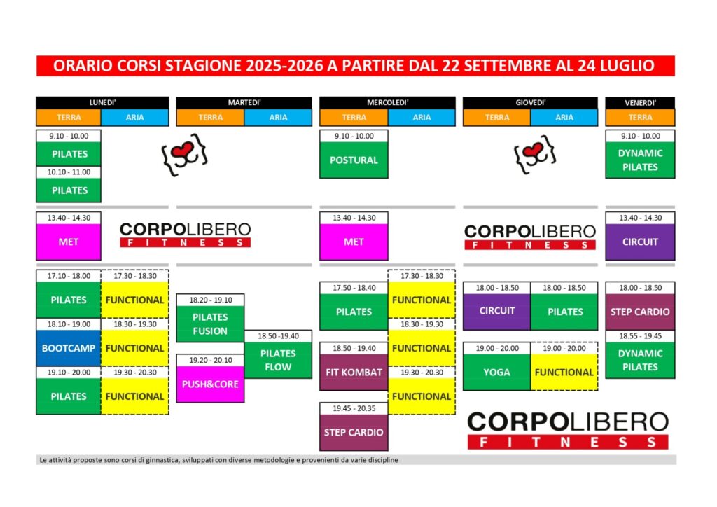vi informiamo che dal 12 gennaio 2026 il corso di Pilates verrà raddoppiato: lo troverete anche alle 10.10 e 17.10.